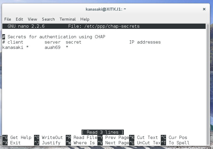 Masukan user di bawah “# client” dan password di bawah “server secret”